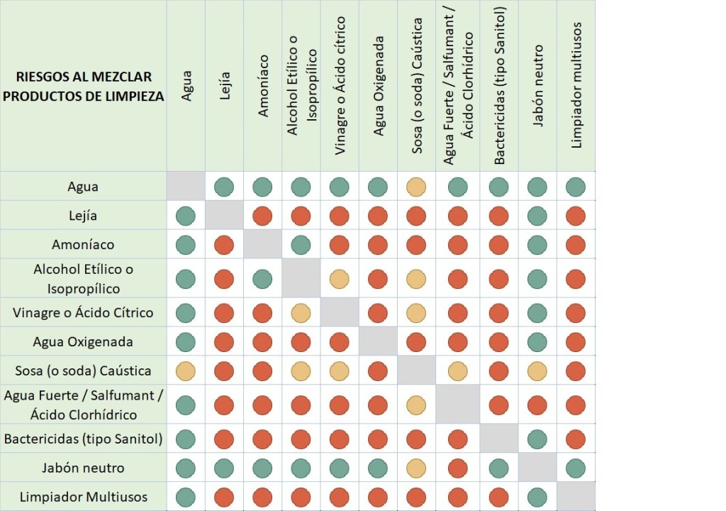 • En amarillo, las mezclas que hay que realizar con precaución (revisar en el artículo los riesgos)